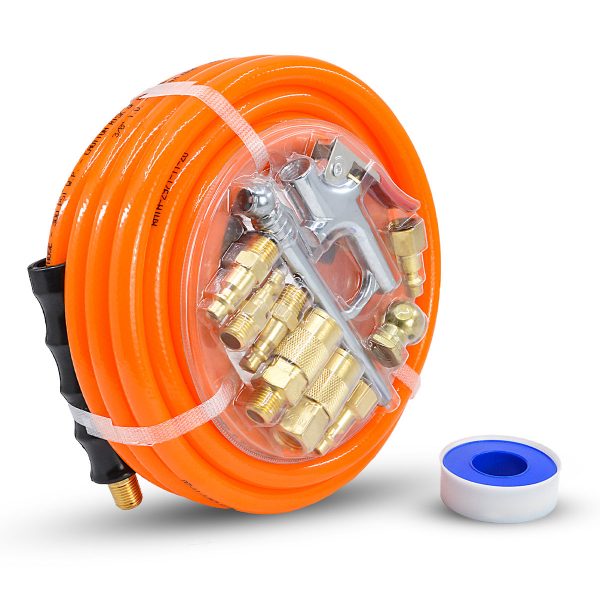 The Avagard Air accessory kit contains many of the air compressor fittings and hose you will need in one reusable storage bag. This kit is perfect for use around your home or anywhere where you need to fill tires or other items requiring air and also your air tools. The storage bag allows your fittings to be readily available quickly.